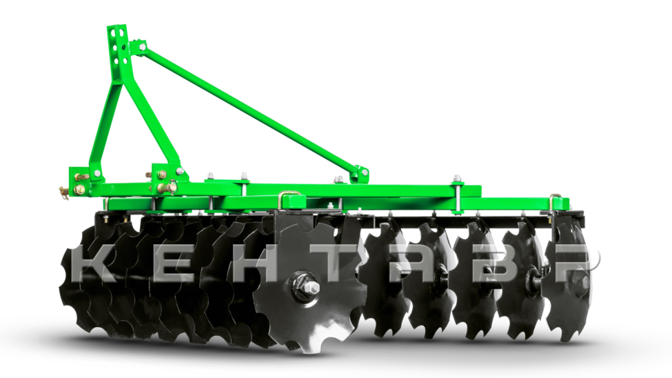 Рабочий орган — вырезные (зубчатые) диски диаметром 460 мм, рассчитанные на уверенное резание дернины и измельчение растительных остатков. Зубчатая кромка улучшает «вход» в почву, снижая требуемое тяговое усилие на плотных участках. Диски выполнены из износостойкой пружинной стали с термообработкой, что повышает сопротивление нагрузкам и абразивному износу при работе по сухим и тяжёлым почвам.
