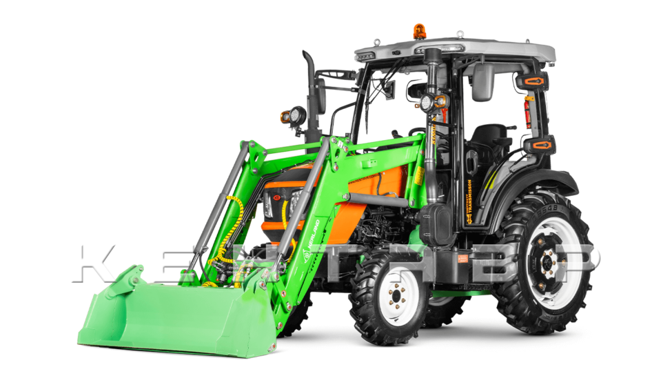 Погрузчик оснащён универсальной рамкой EURO для быстрой смены передних рабочих органов под разные задачи. Этот стандарт используется для погрузочных, складских, коммунальных и хозяйственных операций, поэтому выбор совместимой навески широкий и доступный. Одна базовая машина может работать с разными орудиями без переделки стрелы: челюстной ковш, зерновой ковш увеличенного объёма, паллетные вилы, вилы для рулонов/тюков, силосный захват, гидроповоротный отвал. Использование стандартизированной рамки удобно при смешанной загрузке техники в течение дня: погрузка материалов, складская обработка поддонов, планировка и очистка площадок одним трактором.