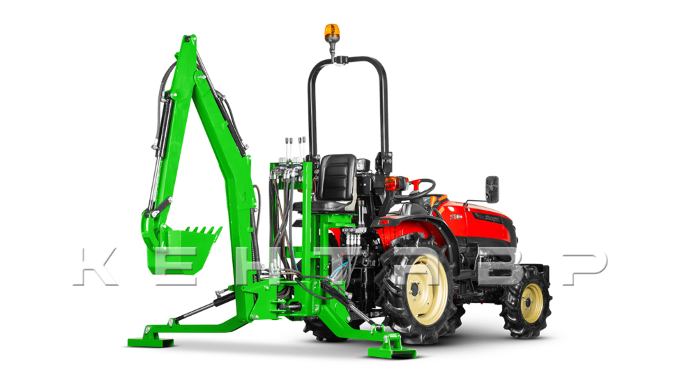 Экскаватор крепится к трехточечной навеске первого класса. Подключение гидравлики производится через гидросистему трактора, с расчетом на производительность насоса до 21 литра в минуту. Емкость гидросистемы самого экскаватора составляет 3,5 литра.