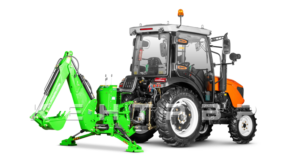 В базовый комплект входят сменные пальцы диаметром 22 и 28 мм, благодаря чему экскаватор без дополнительных приспособлений агрегатируется как с трехточечной навеской первого класса, так и второго класса. Крепление под верхнюю тягу навески трактора имеет гибкие настройки по высоте и вылету.