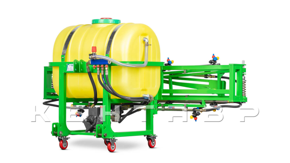 На агрегате установлен регулятор с манометром и отключением секций крыльев. Секционное перекрытие позволяет работать по краю поля, на узких участках и при частичной обработке без перерасхода препарата. Компоновка коллектора обеспечивает быстрый доступ к кранам и шлангам для контроля и регулировки.